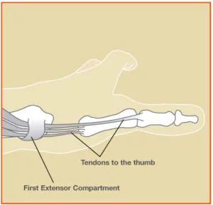 What is it? Inflammation or irritation of a tendon, the thick fibrous cords that attach muscle to bone. Common types in the upper extremity include De Quervain’s tenosynovitis (thumb side of the wrist) and Tennis Elbow.